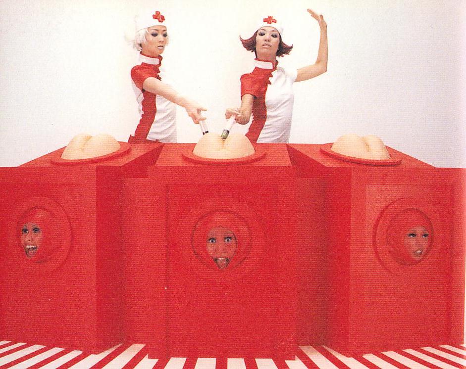 この番組を見る者が感じるのは、「モンティ・パイソン」を想起させるようなブラック・ユーモアの笑いであろう。しかし、これがコメディだとしても、笑いが惹き起こされるのは、役者の台詞や体技によってではなく、ナンセンスな映像とアップテンポな音楽の競合によるものである。たしかに、役者の代わりにマネキン人形を用いた「フーコン・ファミリー」や「オー!マイキー」には漫才の掛け合いにも似た言葉の笑いがある。しかし、古い民家で和装の女たちが唄いつつ踊る「唄う六人の女」、長屋の主婦たちのとんでもなくハイスピードな動きをスローモーションで撮影した「主婦マニア」、あるいは、007ばりの女殺し屋たちやサディスティックな女医が登場する「クイック・ガール」、「Dr.フェロー」などでは台詞は極度に切り詰められており、そこに見出されるのはプロットの論理を解体し、ロゴスとしての言葉を超越するような、映像と音楽が織りなすハイパー・リアルな世界なのである。